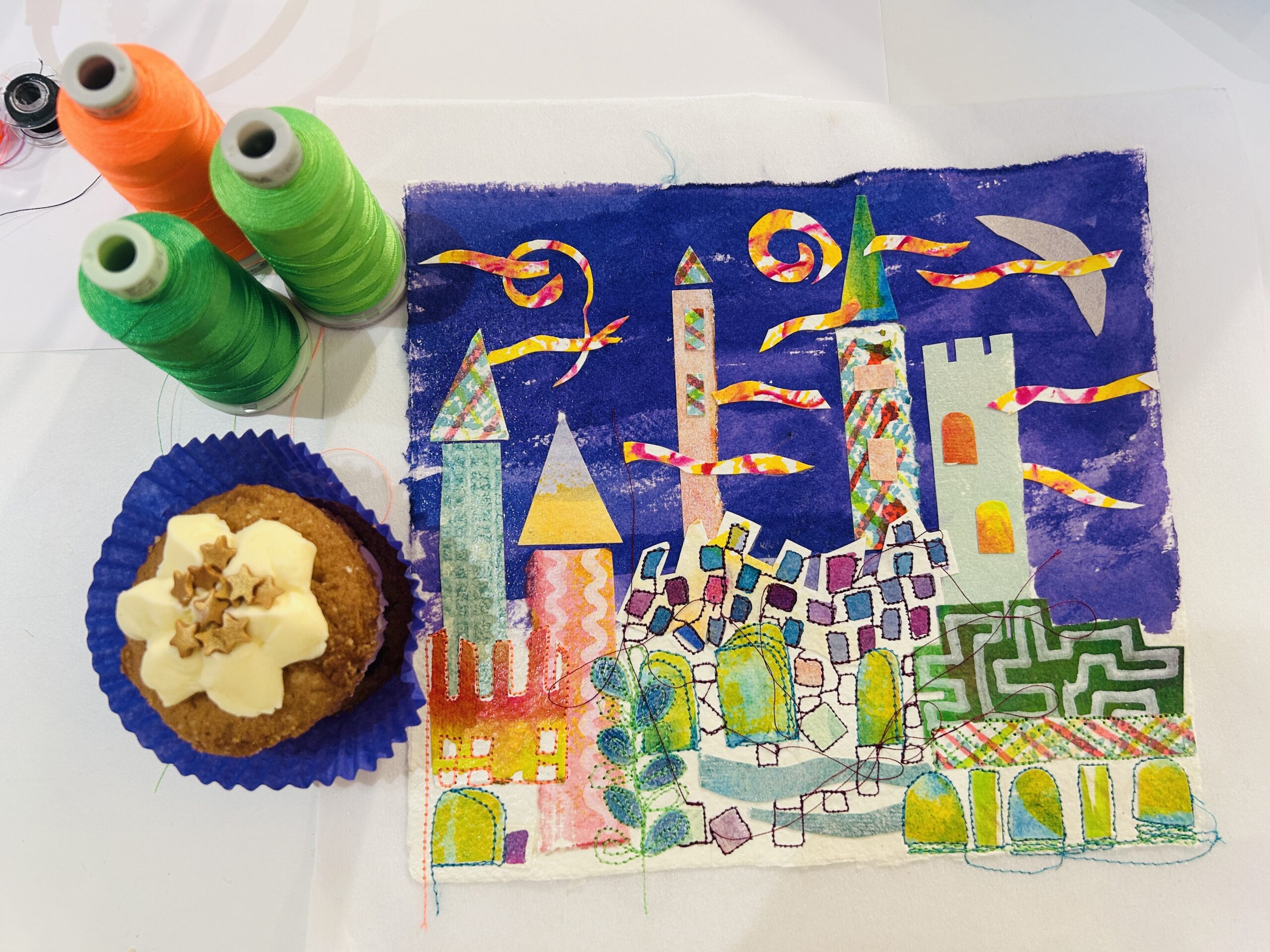 A joyful machine embroidery workshop inspired by children’s book illustrations. These are often very graphic and stylised and it’s great fun to take inspiration from them.